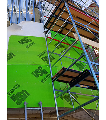 Securock è una Lastra ad elevata resistenza al fuoco, all’umidità e all’acqua, costituita da un nucleo in gesso additivato e da un rivestimento in fibra di vetro esterno.
